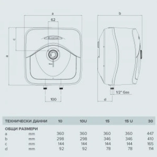 Моделът малолитражен бойлер Andris RS е предназначен за монтаж над мивка.