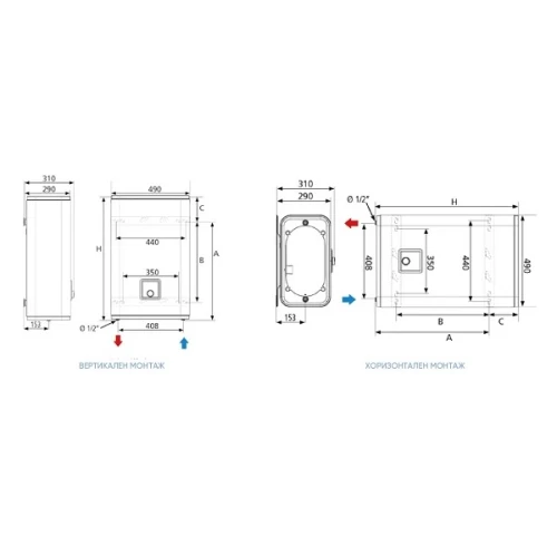 - Монтаж- Вертикален, Хоринзонтален