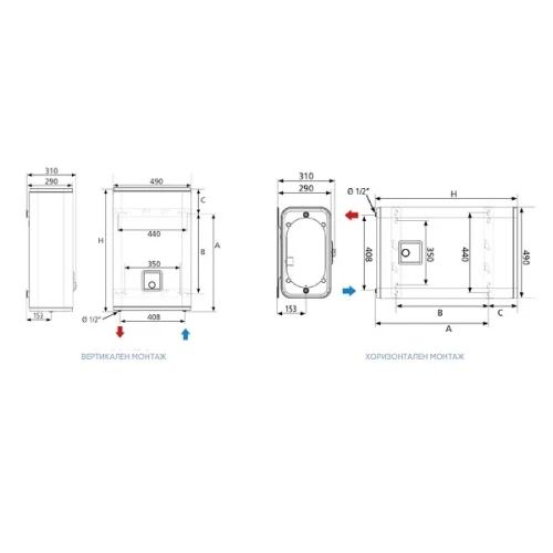 - Монтаж- Вертикален, Хоринзонтален