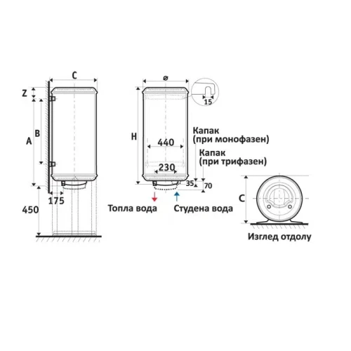 - Ел. потребление (kWh/24ч. при 65°C): 1.79