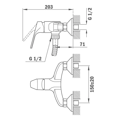 Смесител за душ MT PLUS, без чучур, хром