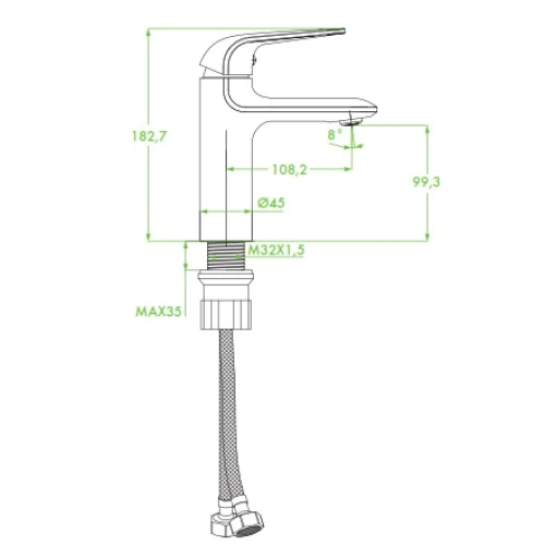 - Дължина на чучура - 108.2 мм