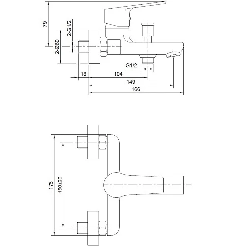 - Дължина на чучура от стената - 166 мм