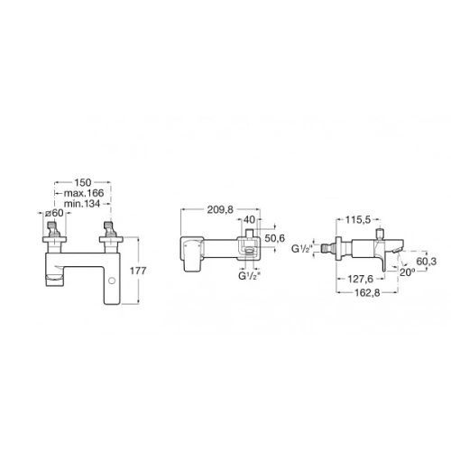 Смесител ROCA L90 с чучур, за стенен мотаж с автоматичен превключвател.