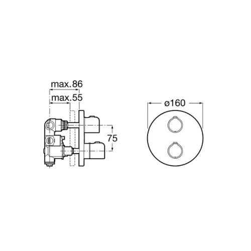 Вграден термостатичен смесител за вана-душ с превключвател.