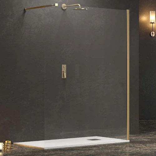 Параван за баня Walkin 1 GOLD е от 8 мм. прозрачно стъкло, като обковът е в цвят злато.
