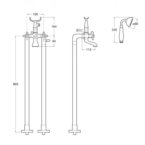 Свободностоящ смесител за вана ROCA Carmen, хром