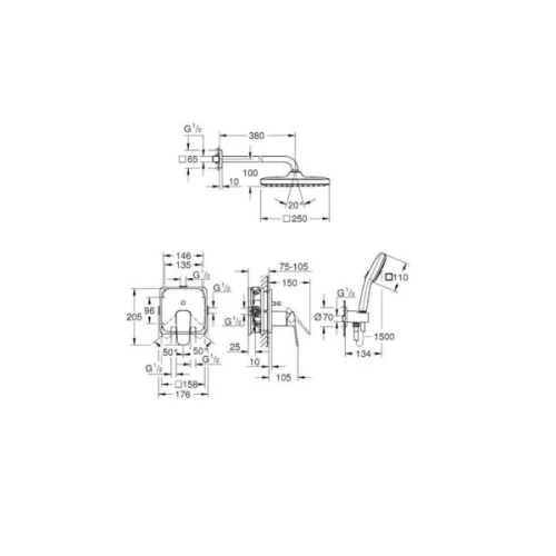 - душ пита Tempesta 250 Cube 9.5 l/min (26 687) с хоризонтално рамо 380 mm
