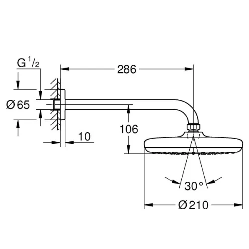 - Душ глава ф210 мм комплект с рамо за стена 286 мм
