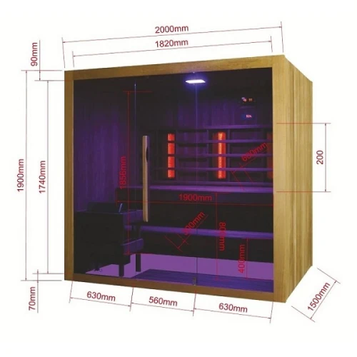 Комбинирана инфрачервена и финландска сауна “ECLIPSE Hemlock”, 204.3×200.8×205,5 см