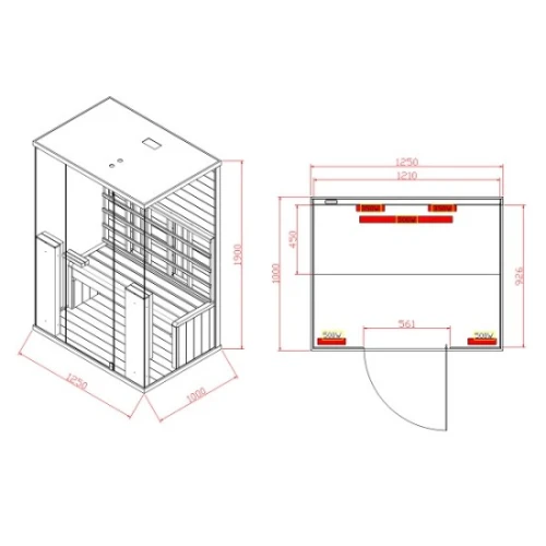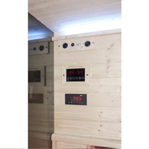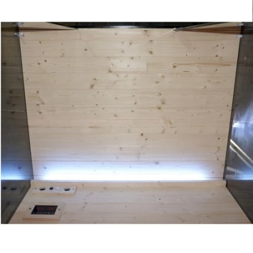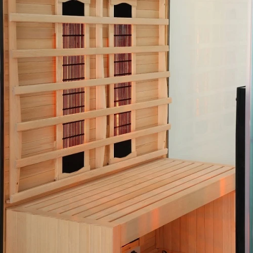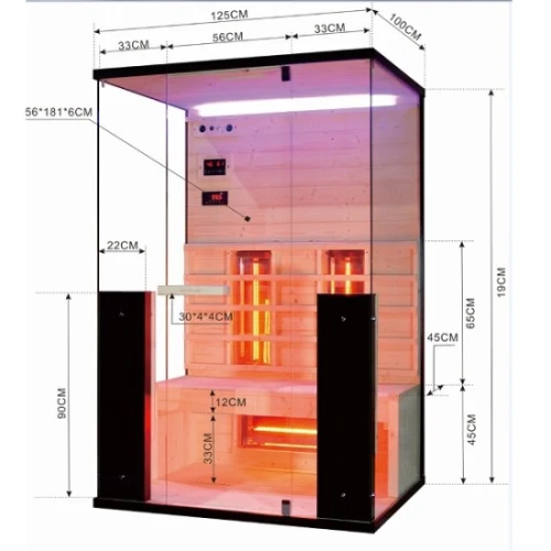 Седнете на просторната пейка, от смърч, облегнете се назад и се насладете на времето. Инфрачервената кабина и идеална за 2-ма души и предлага достатъчно пространство.