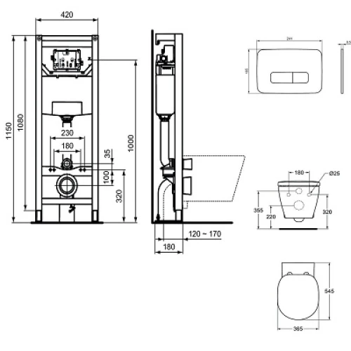 | Структора за вграждане с тоалетна чиния, капак и бутон | |