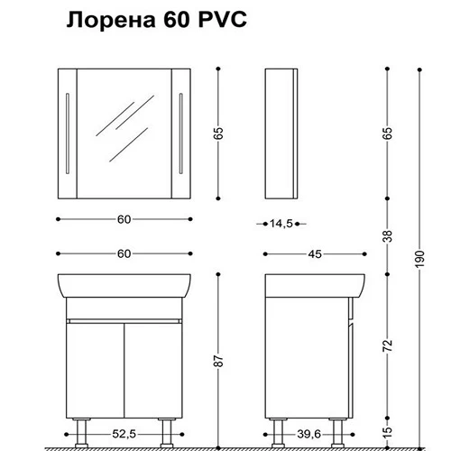 Комплект мебели за баня Лорена 60 см, с бяло гланцово покритие, изработени от водоустойчиво PVC с дебелина 18 мм. Гаранция 3 години!