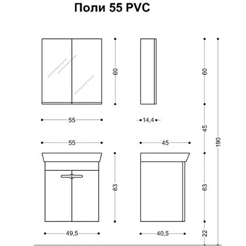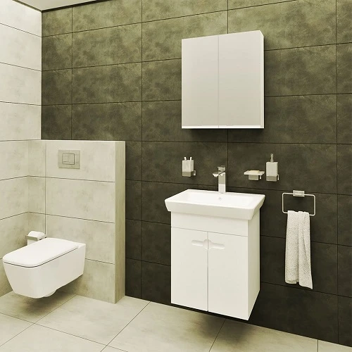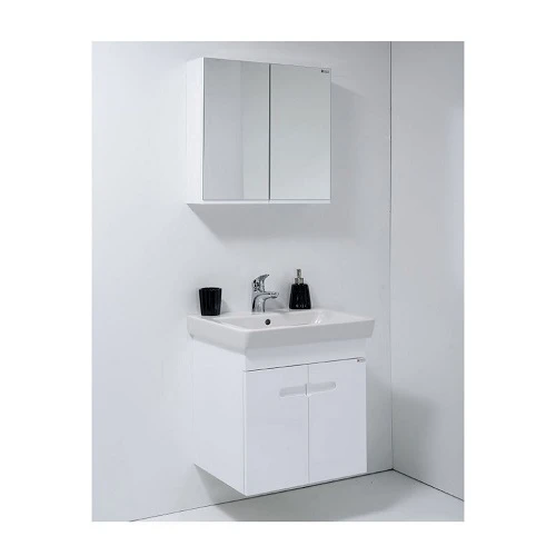 Комплект мебели за баня Поли 55 см, с бяло гланцово покритие, изработени от водоустойчиво PVC с дебелина 18 мм. Гаранция 3 години!