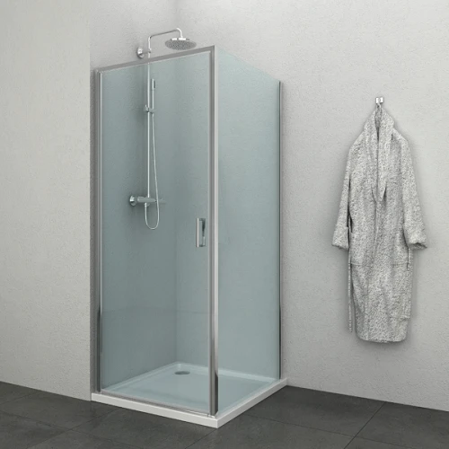 Квадратна душ кабина в два размера с отваряема врати и стационарно стъкло, реверсивна.