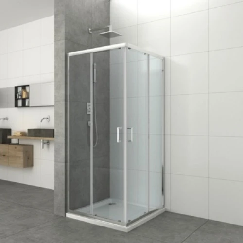 Квадратна душ кабина със Soft Close механизъм на затваряне на вратите.