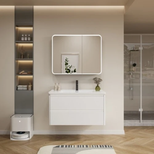 - Долен шкаф за баня от PVC със Soft close и две чекмеджета