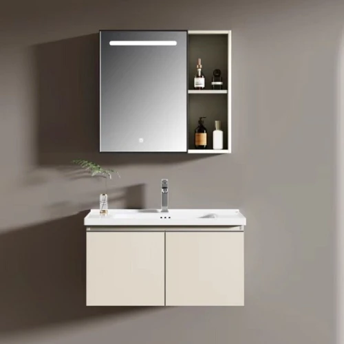 Мебели за баня SIGMА, от PVC, 70 см. - долен шкаф с умивалник и горен шкаф с LED огледало
