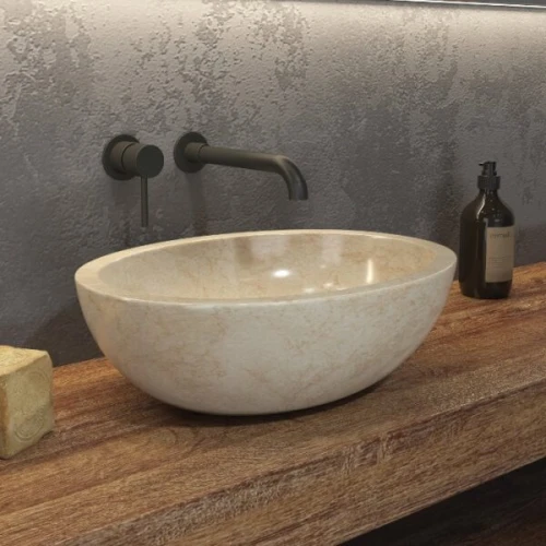 Мивките за баня от естествен камък са ръчно обработени и не са продукт на промишлено производство. Характеристиките на естествения камък са наличието на различни цветове, нюанси, микропукнатини и дупки, които не са дефекти, а са резултат от естеството им. По време на окончателния контрол на качеството някои от тях се рафинират със смола. Всеки от умивалниците е различен, дори едни и същи модели в нюансите и размерите. Предлагат се в три цвята: Бял, Кремав и Черен.
