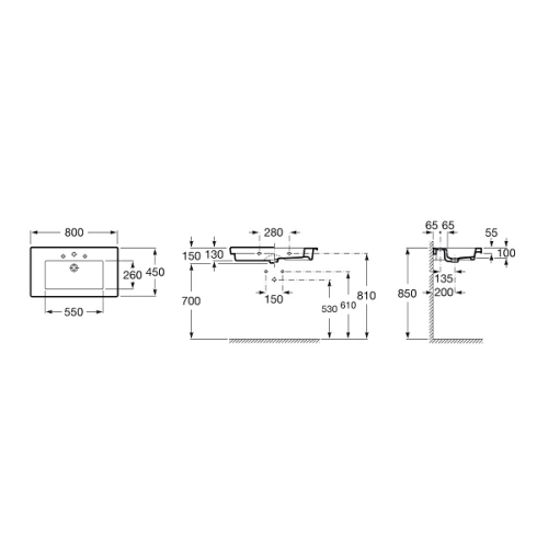 - Отвори за смесителна батерия: 1 предварително щанцован, 1 разпробит отвор, 1 предварително щанцован