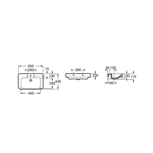 - Отвори за смесителна батерия: 1 предварително щанцован, 1 разпробит отвор, 1 предварително щанцован