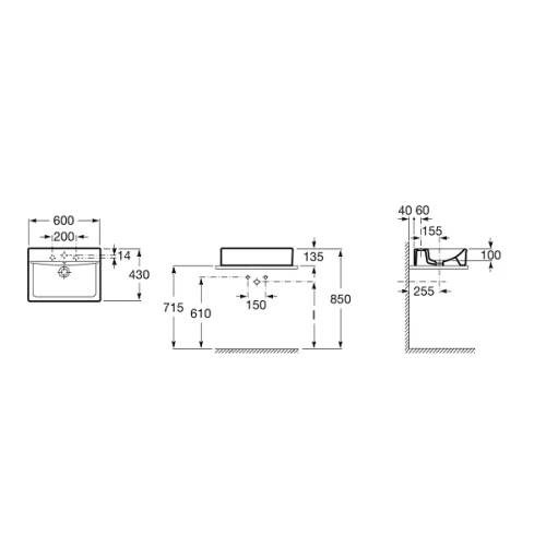 Мивка за баня ROCA Diverta, 60х43х13.5 см, бял
