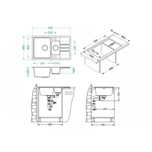 - Размер на мивката: 780х480 мм