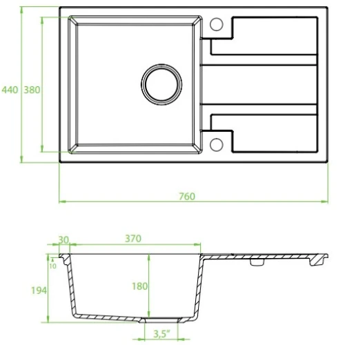 Мивка за кухня, BARBADOS, 44х76х18 см, гранит