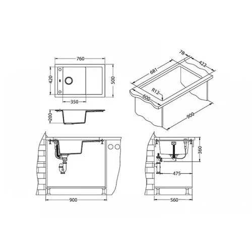 - Размер на мивката: 750х500 мм