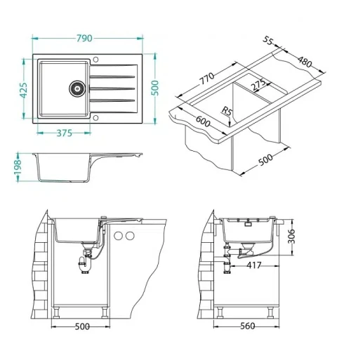 - Размер на мивката: 790х500 мм