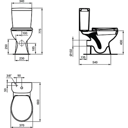 Моноблок с хоризонтално оттичане с тоалетна седалка с палвно затваряне.