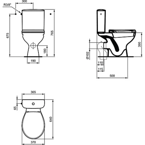 Моноблок с хоризонтално оттичане с тоалетна седалка.