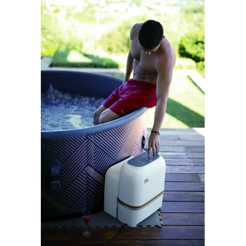 - С “Plug and Play” –технологията можете да поставите джакузито където искате – на двора, на верандата или в някое помещение. Възползвайки се от функцията за самостоятелно надуване трябва само да извадите джакузито от опаковката, да го включите и да натиснете бутона за надуване. След няколко минути ще имате готово за ползване джакузи.