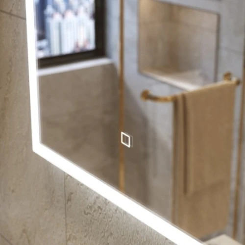 Огледало за баня LED осветление ZI313, 60х60х5 см, златиста рамка