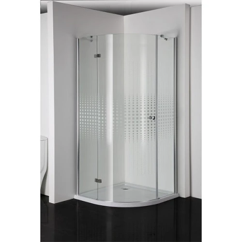Овална душ кабина с една отваряема врата на панти, рисувано стъкло и се предлага в два размера.