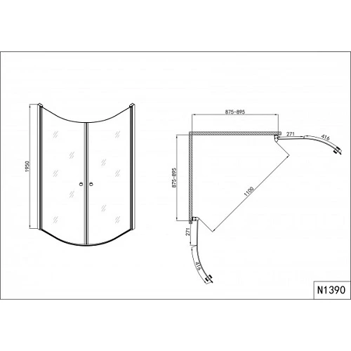 Овална душ кабина 90х90х195 см с отваряеми врати навътре – навън.