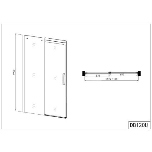 Душ параван с плъзгаща врата 120х195 см за монтаж между две стени.