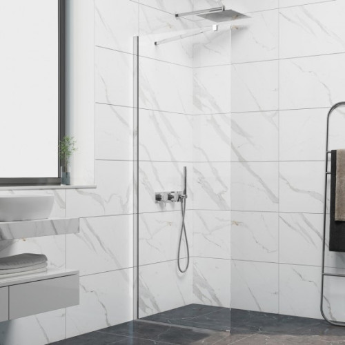 Параван за баня CRISTINA е стационарен параван за баня от 8 мм. закалено прозрачно стъкло с хром профил.