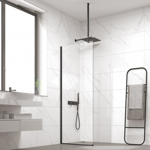 Параван за баня CRISTINA е стационарен параван за баня от 8 мм. закалено прозрачно стъкло с черен профил.
