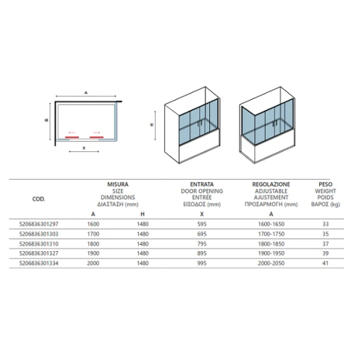 Параван за вана FLORA 300 Cristalo, 160-200х148 см, прозрачно стъкло, хром