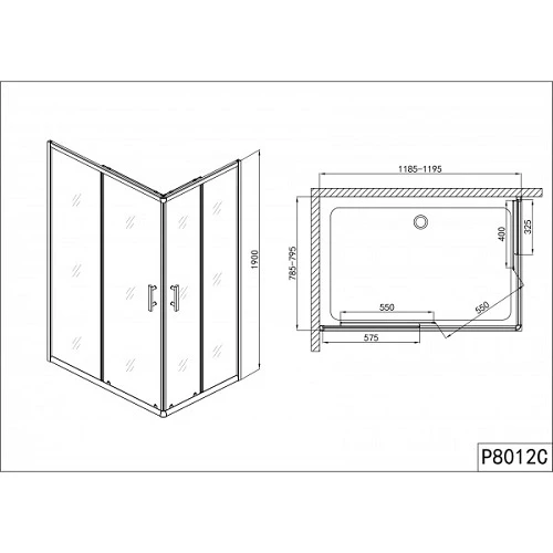Правоъгълна душ кабина SURF, рисувано стъкло, хром