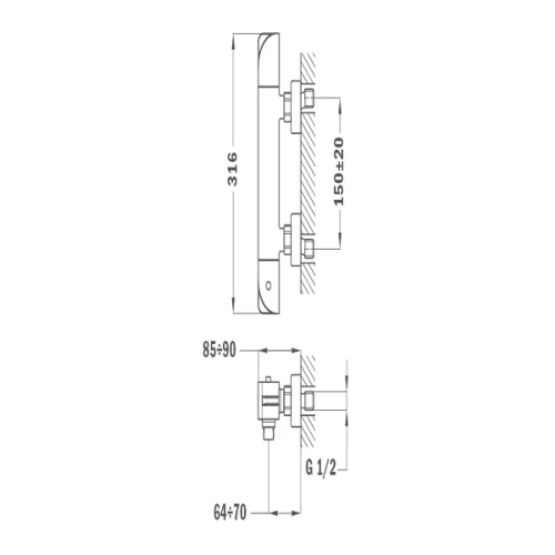 Смесител с термостат Soller без чучур, за стенен мотаж.
