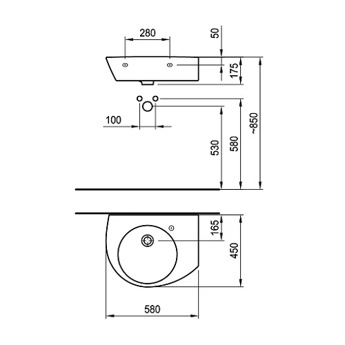 Мивка за баня 580, ляв - десен отвор