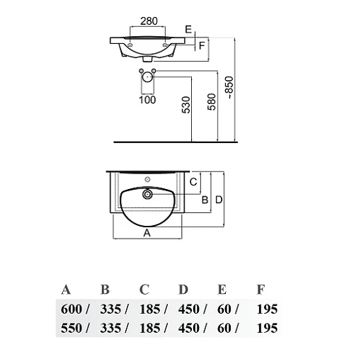 Мивка за баня AREA, за мебел