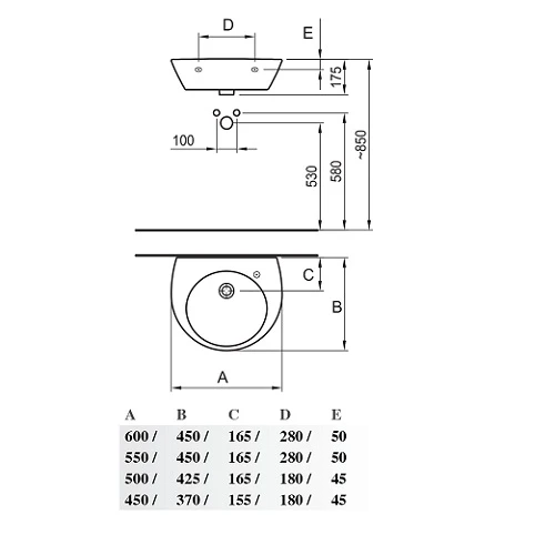 Мивка за баня с десен отвор за смесител, 45-60 см, бял