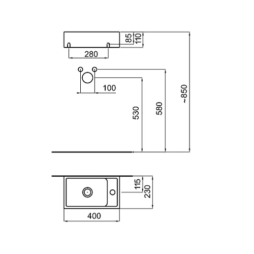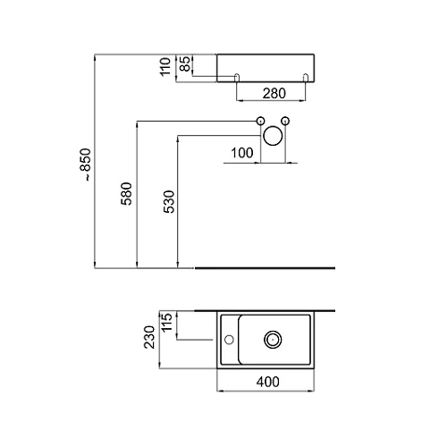 Мивка за баня LORA, 40 см, ляв - десен отвор