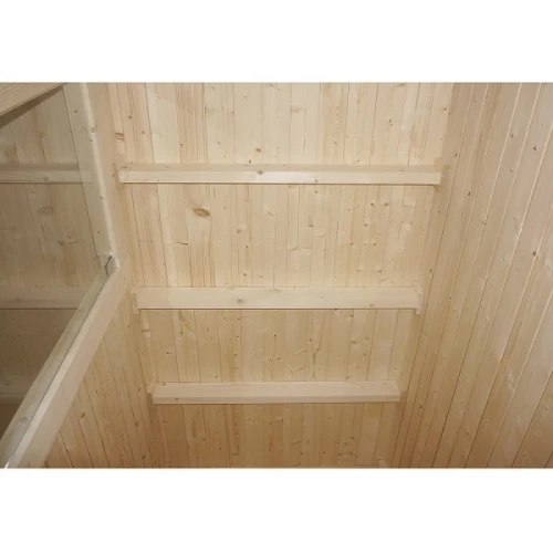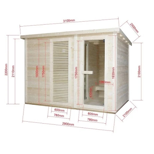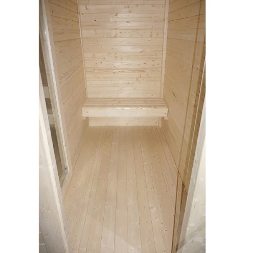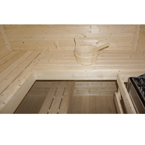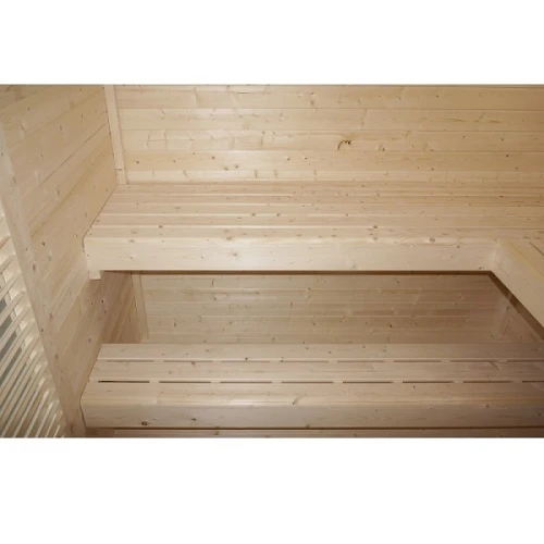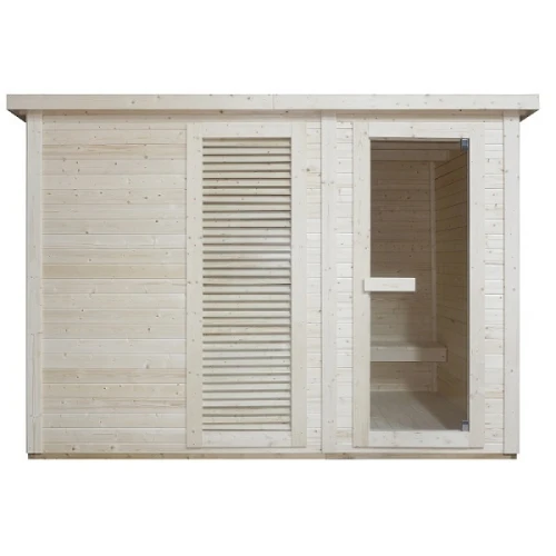 Външната сауна VAASA ( тип къща ) ви предлага несравнимо сауна изживяване във вашата собствена градина. С място за 4-5 човека, стилната сауна, тип къща, разполага с просторна съблекалня, която ви предлага допълнителен комфорт и уединение. Висококачествената изработка, от здрава дървесина, осигурява естествена атмосфера и оптимално запазване на топлината. Класическият дизайн се вписва хармонично във всяка среда и прави сауната идеалното убежище за релаксиращи часове сред природата.