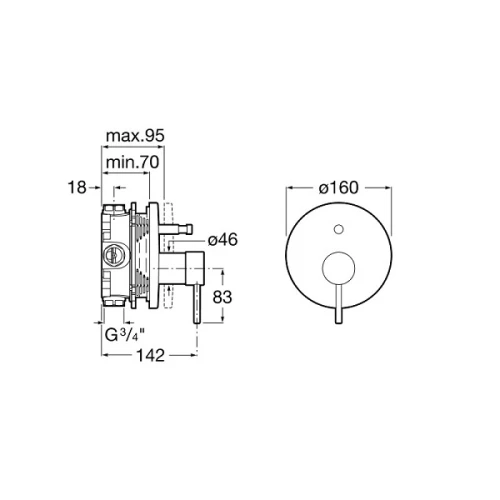 ROCA Lanta, едноръкохватков смесител за вана/душ, за стена с автоматичен превключвател.
