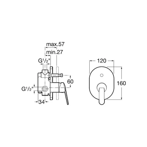 ROCA Victoria, едноръкохватков смесител за вана/душ, за стена, хром.