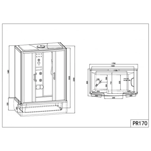 Хидромасажна душ кабина с вана NEVADA, 85x150-170x220 см